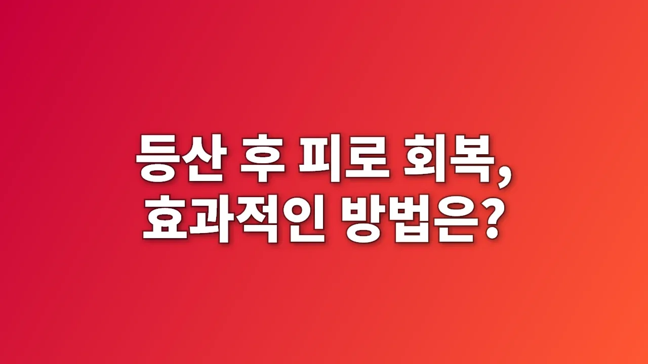 등산 후 피로 회복, 효과적인 방법은?